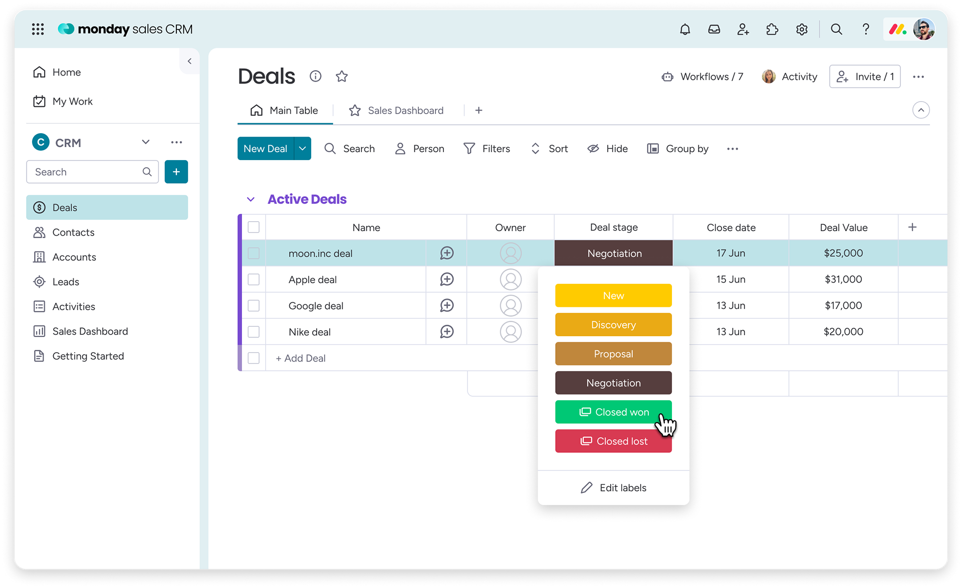 Rep-facing experience: advancing a deal to the next stage in the pipeline.